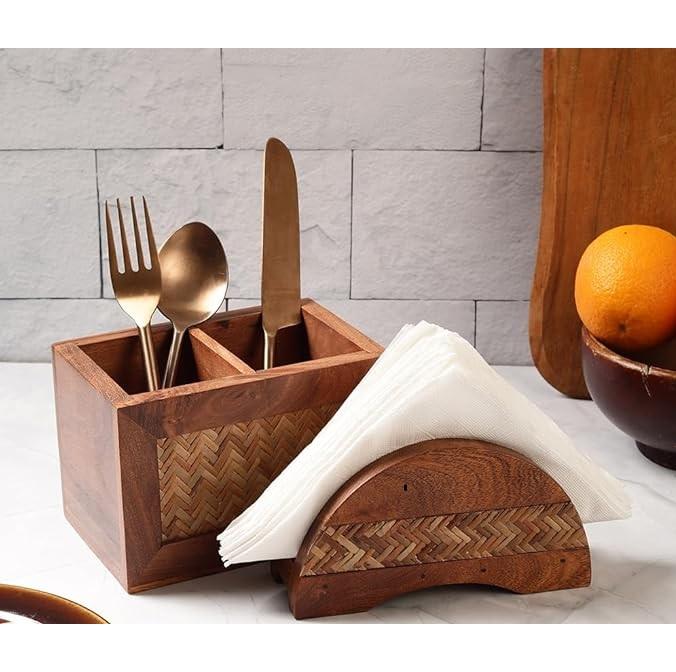 Durable Wooden Cutlery Holder With Multiple Compartments Ideal For Organizing Knives Forks And Serving Utensils