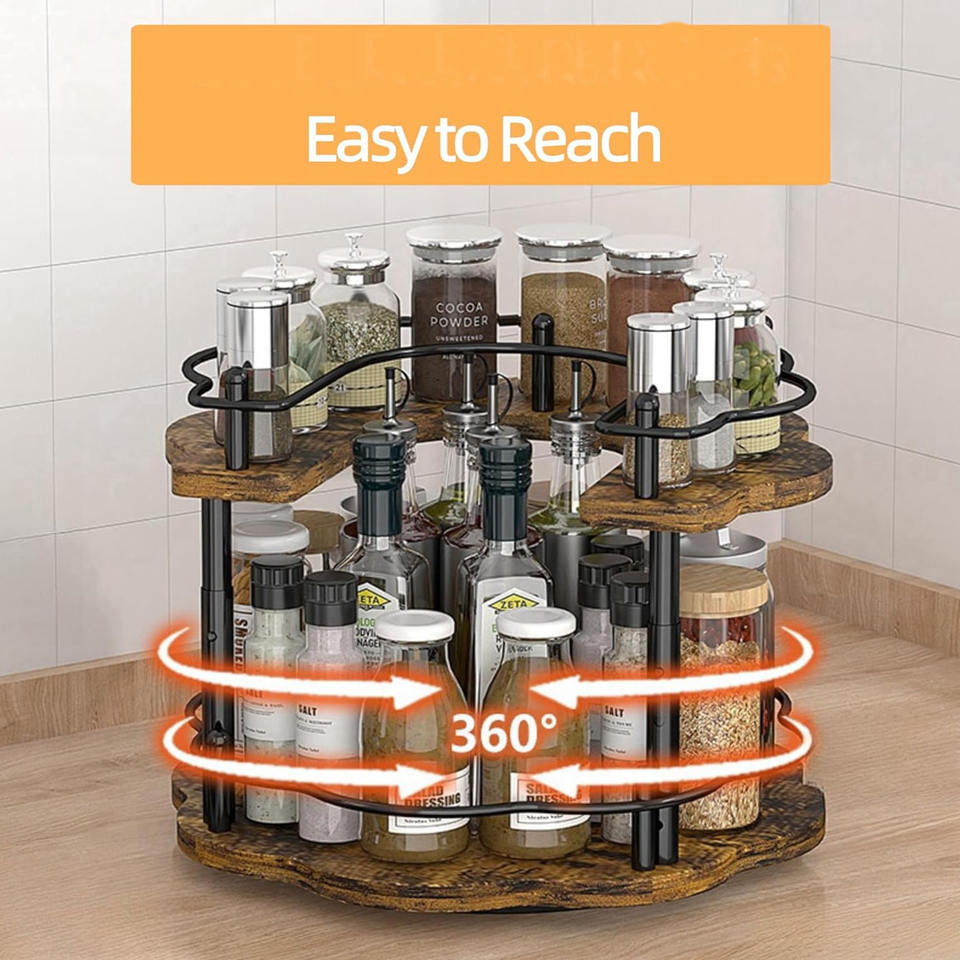 Durable Wooden Double Lazy Susan Turntable Organizer Rotating Kitchen Pantry Countertop Spice Rack Food Bin Display Storage