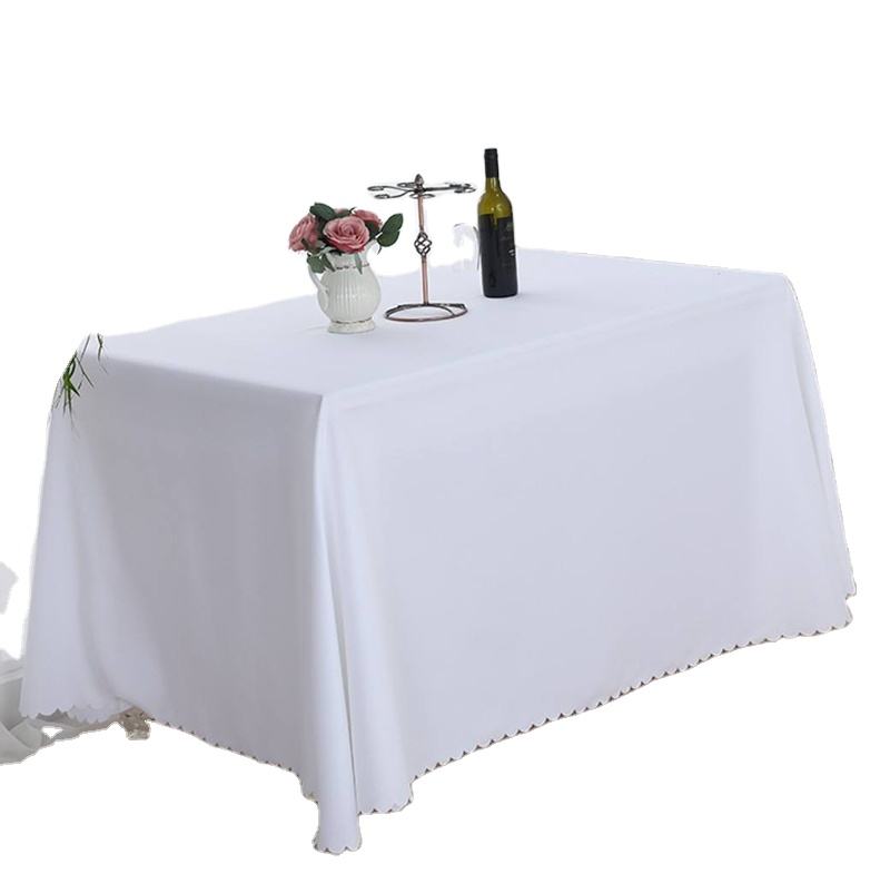 Durable Woven Logo Square and Round Pattern Rectangle White Table Cloth for Wedding Banquets and Home Use Wedding Tablecloth