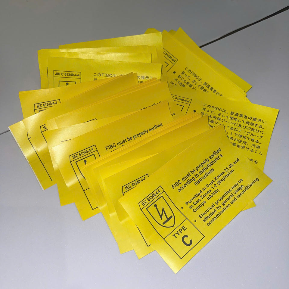 Durable Yellow Satin Waterproof Adhesive Sticker Warning Label FIBC Jumbo Bags Safety Caution Tag Dust Gas Zones Packaging