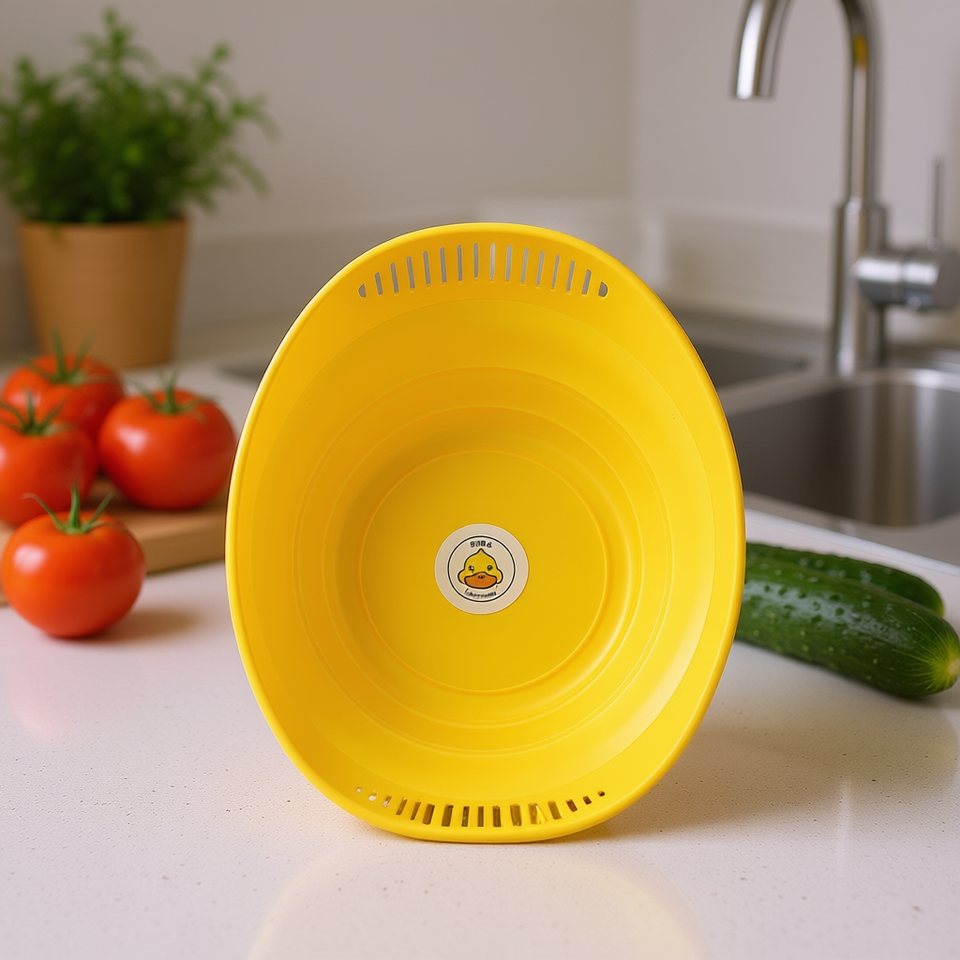 Durable Foldable Plastic Filter Basket For Kitchen Food Storage, Round Cute Design With Drainage Holes, Modern Style By Jiurui D