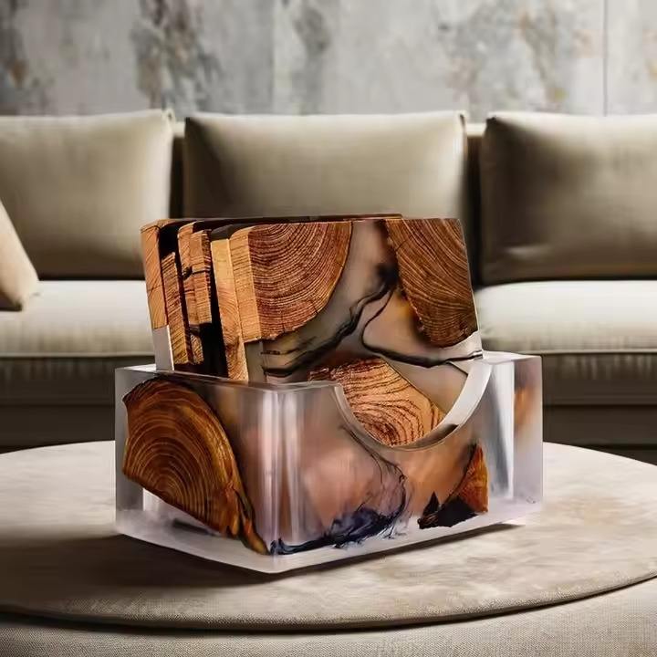 Durable and stylish resin wood coaster handmade for home bar decor tabletop serving kitchen tea accessory lifestyle tray