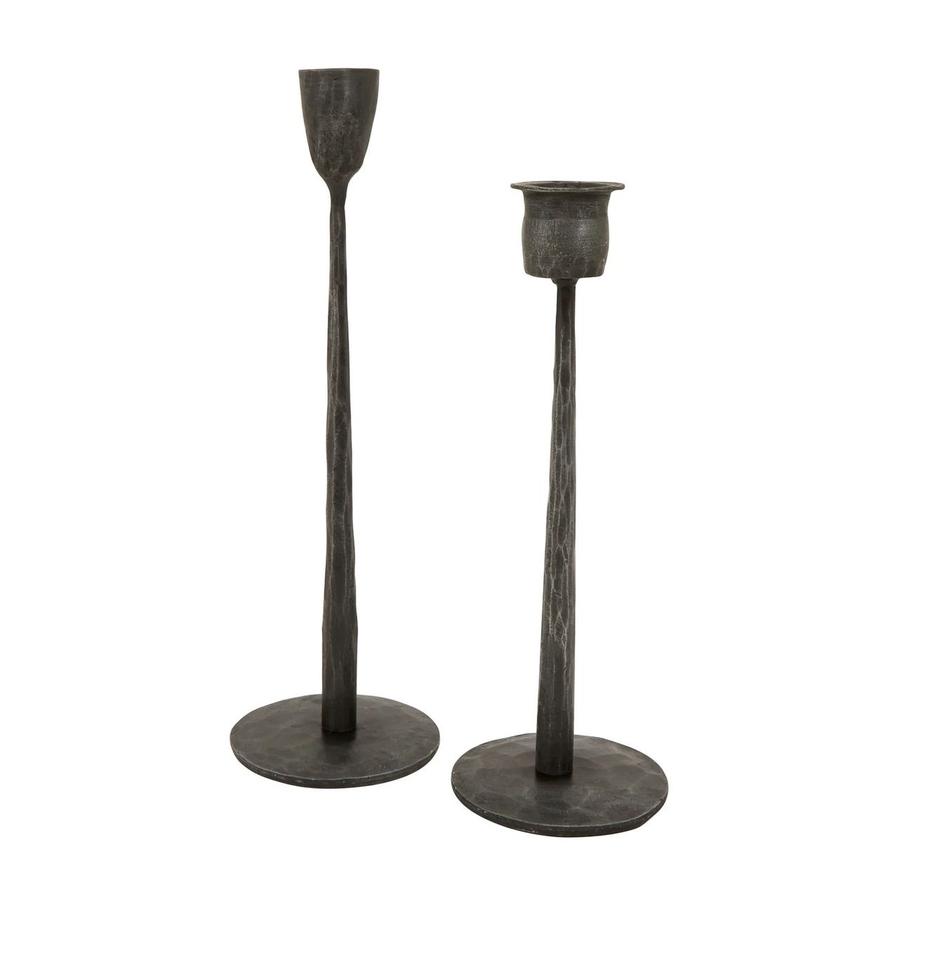 Durable black iron candle holder with premium scrollwork ideal for romantic events classic table lighting and rustic rooms