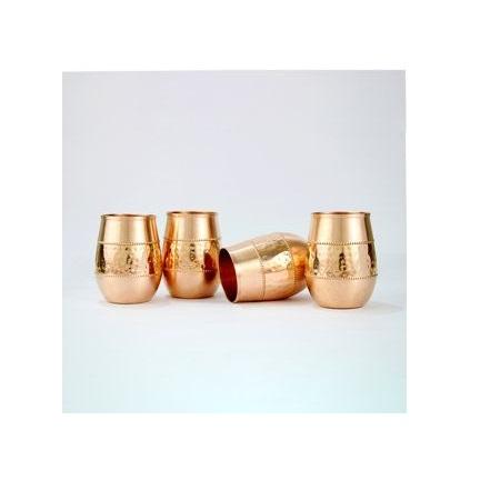 Durable copper cup for drinking water or juice made by artisans with fine detailing and antique traditional finished