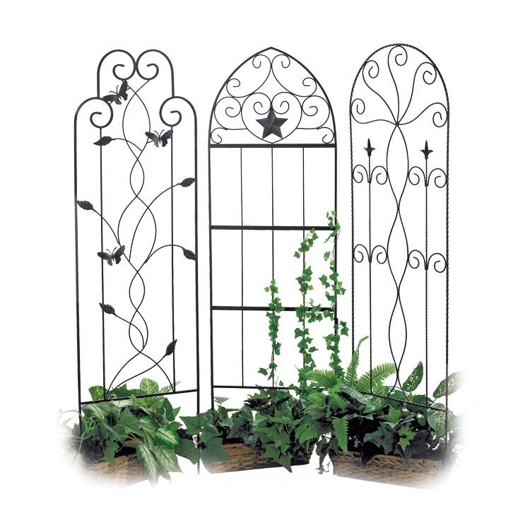 Durable metal garden trellis providing strong decorative vertical support for climbing plants in outdoor gardens