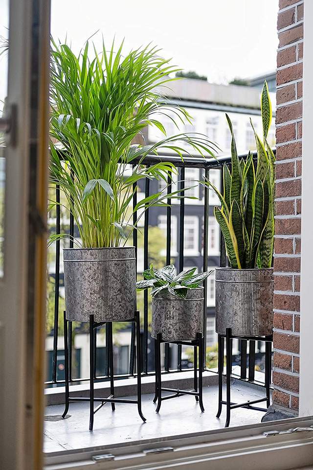 Durable reinforced metal planter stand designed for prolonged use suitable for balconies gardens and patios