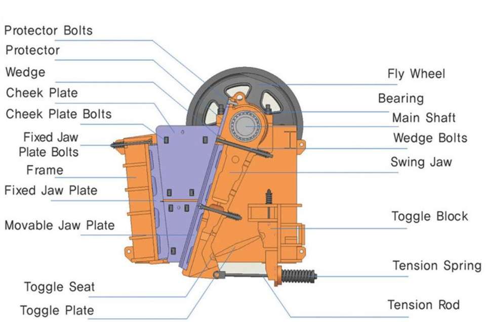 Core Components:Fixed Jaw Plate, Movable Jaw Plate, Pitman, Toggle Plate, Eccentric Shaft/Bearing