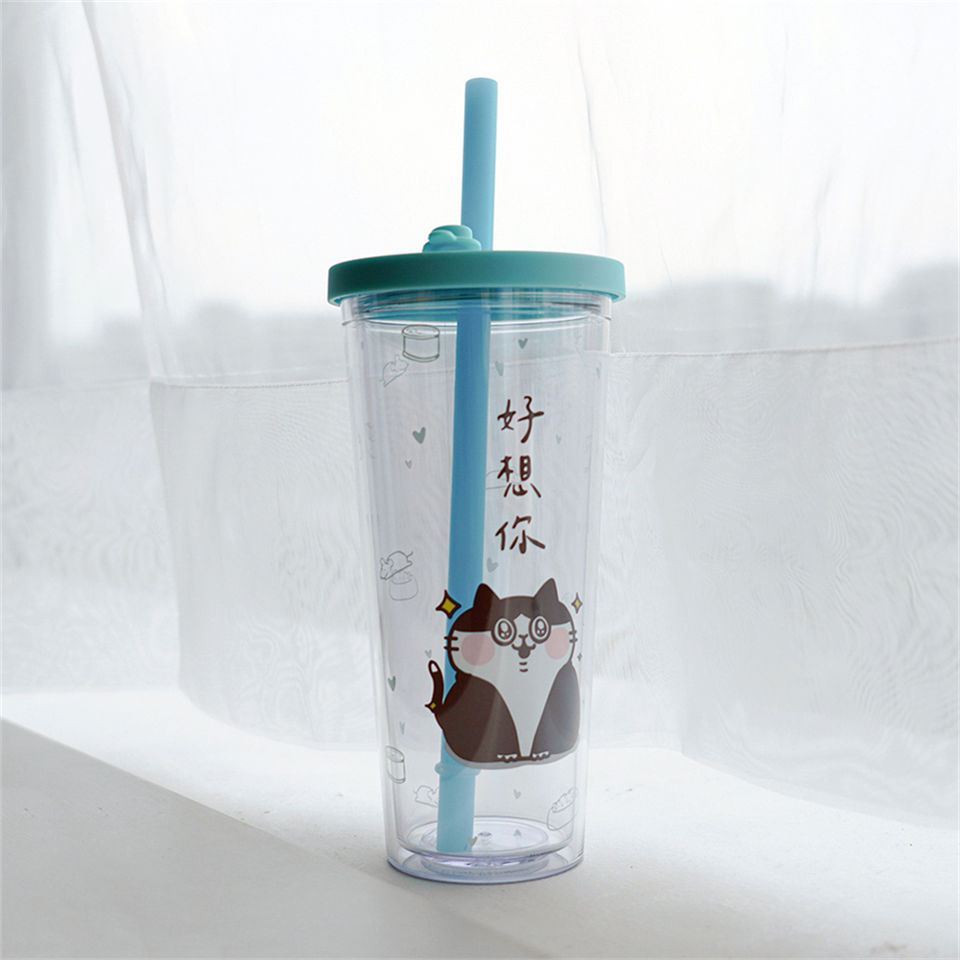 Durable School Student Cold clear Water Bottle with Straw