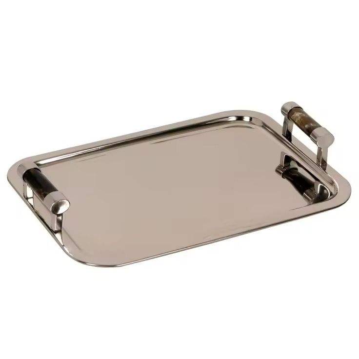 Durable stainless steel serving tray designed for multipurpose use including kitchen storage drink service and food carrying