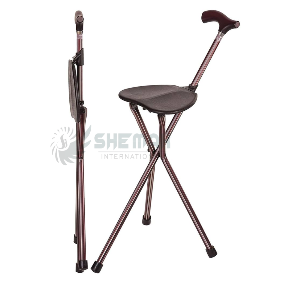 Durable walking seat stick for horse riding featuring folding seat design and sturdy support ideal for outdoor adventures.
