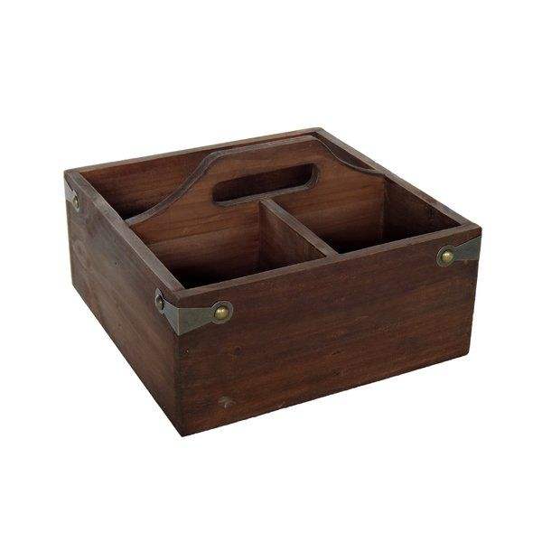 Durable wooden caddy with metal handle used for kitchenware accessories at wholesale price
