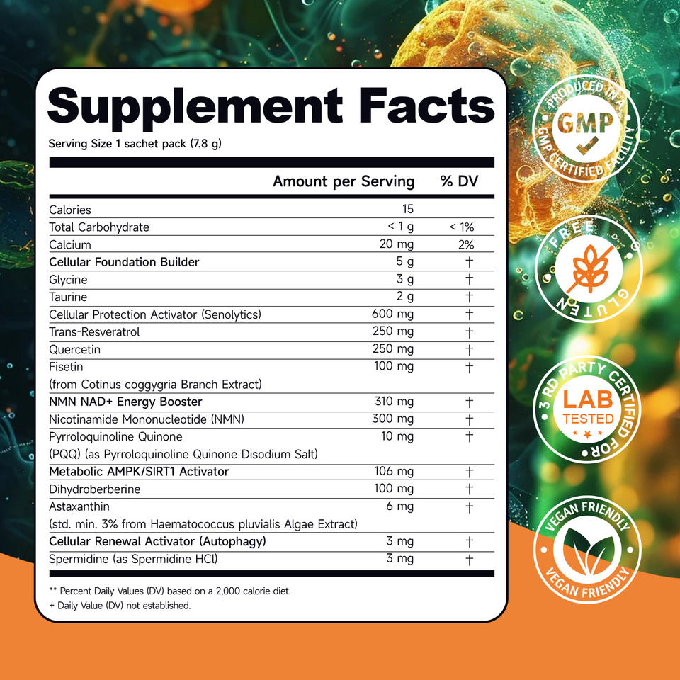 Main Ingredient:Trans-Resveratro, Quercetin, NAD+ Energy Booster, Dihydroberberine