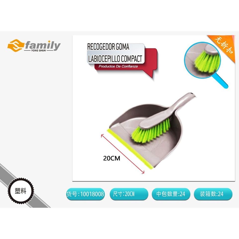 Dustpan with rubber lip and compact brush for household cleaning