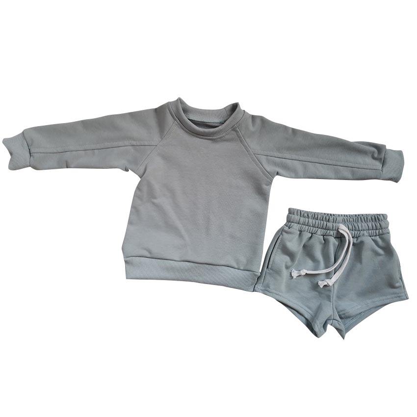 Dusty Blue Baby Clothing Sets Sweater and Shorties Set Kids Toddler Outfit Cotton French Terry Sweatershirts Sets
