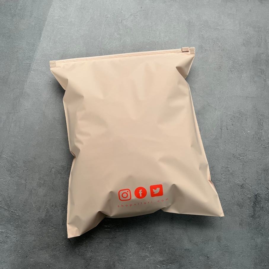 Dusty Proof Beige Wholesale Eco Friendly Recyclable Screen Printed Custom Frosted Zipper Bag for Cloth Packing Shoes & Fur