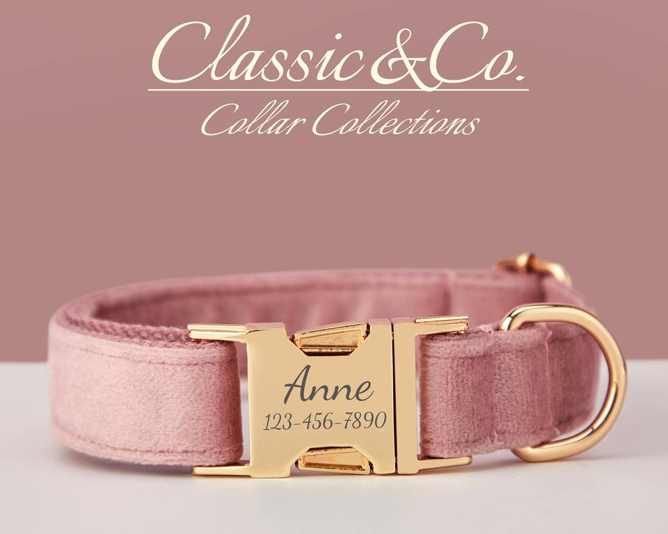 Dustypink Veet Personalize Dog Collar Leash Set With Flower & Bow Tie For Male Female Pet,Gold Engraved Name Tag,Wedding Puppy