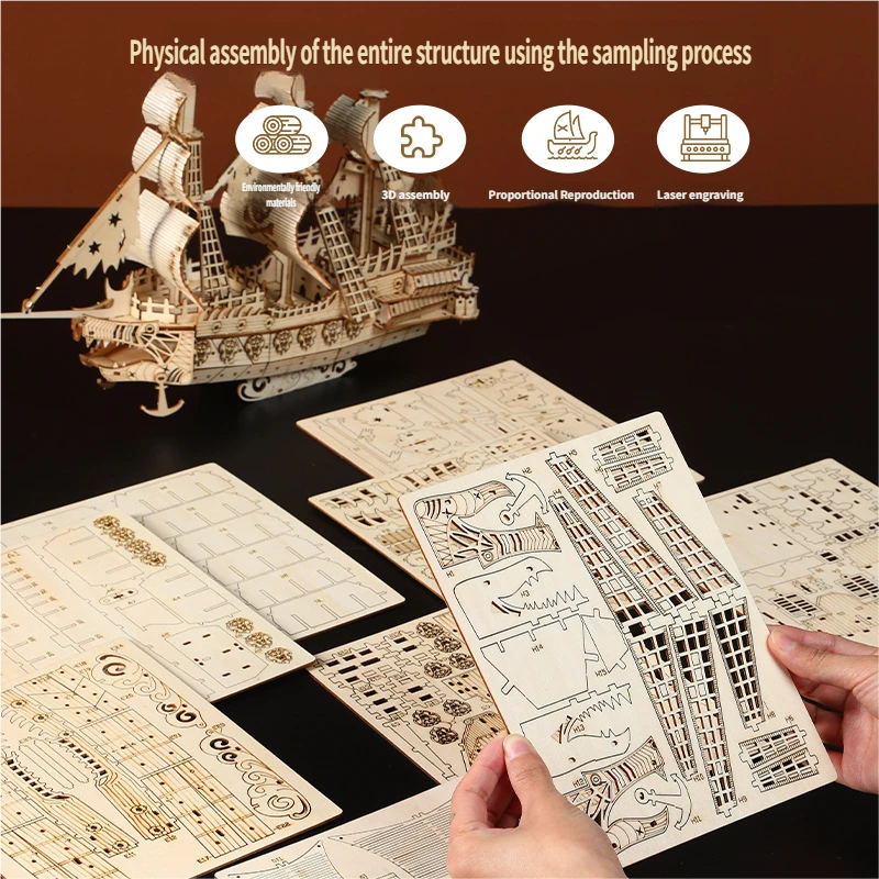 Dutchman Wooden Ship Model 3D Puzzle DIY Assembly Educational Building Block Toy Handmade Gift for Kids
