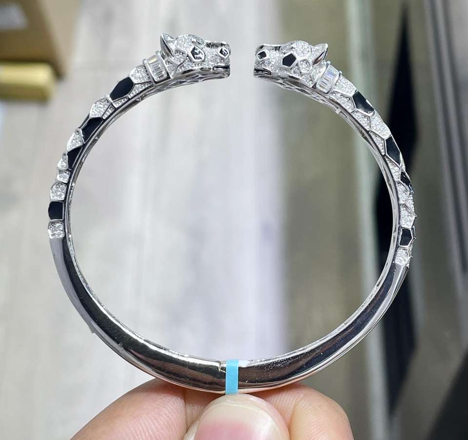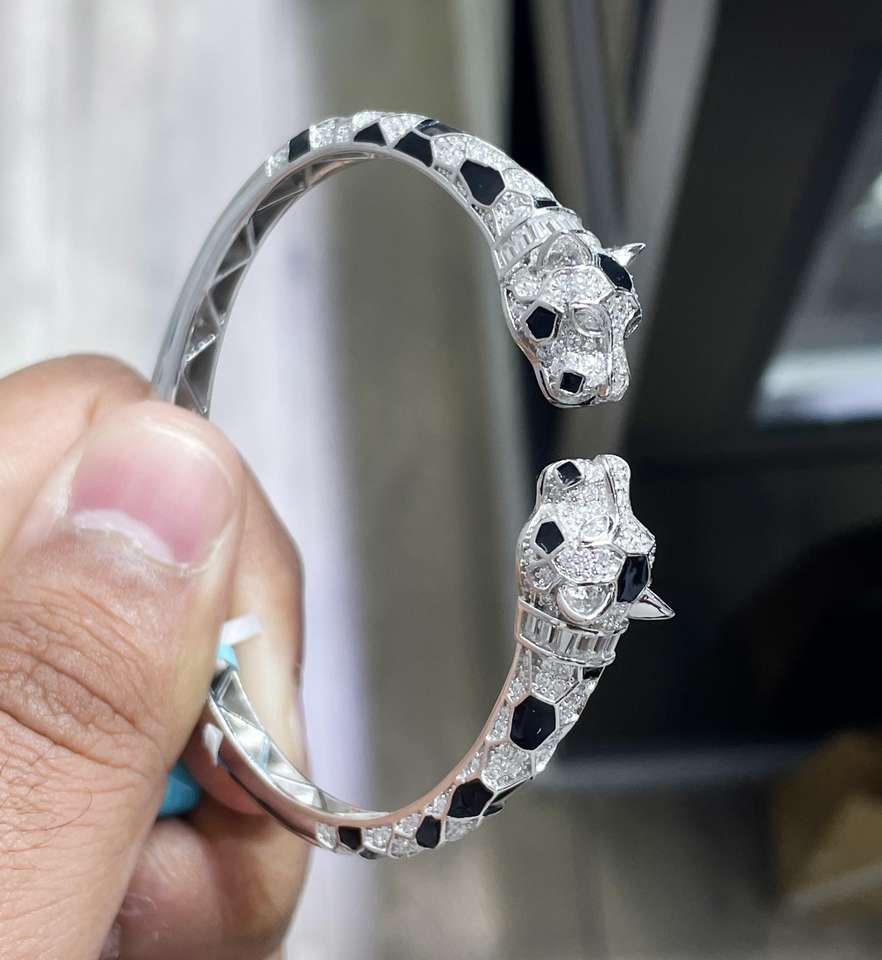 Dvars Diamond 18K Gold Plated Sterling Silver Moissanite Panther Bangle Rose Gold Plated Hip Hop Bracelet