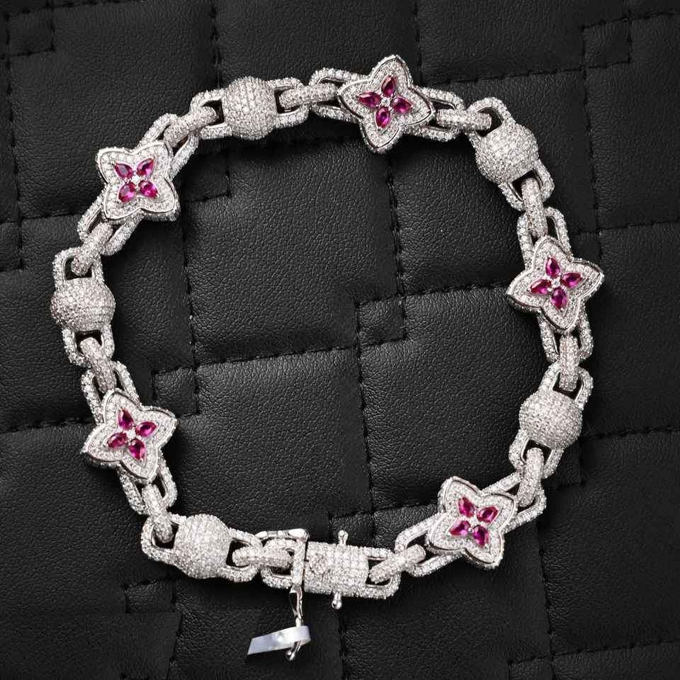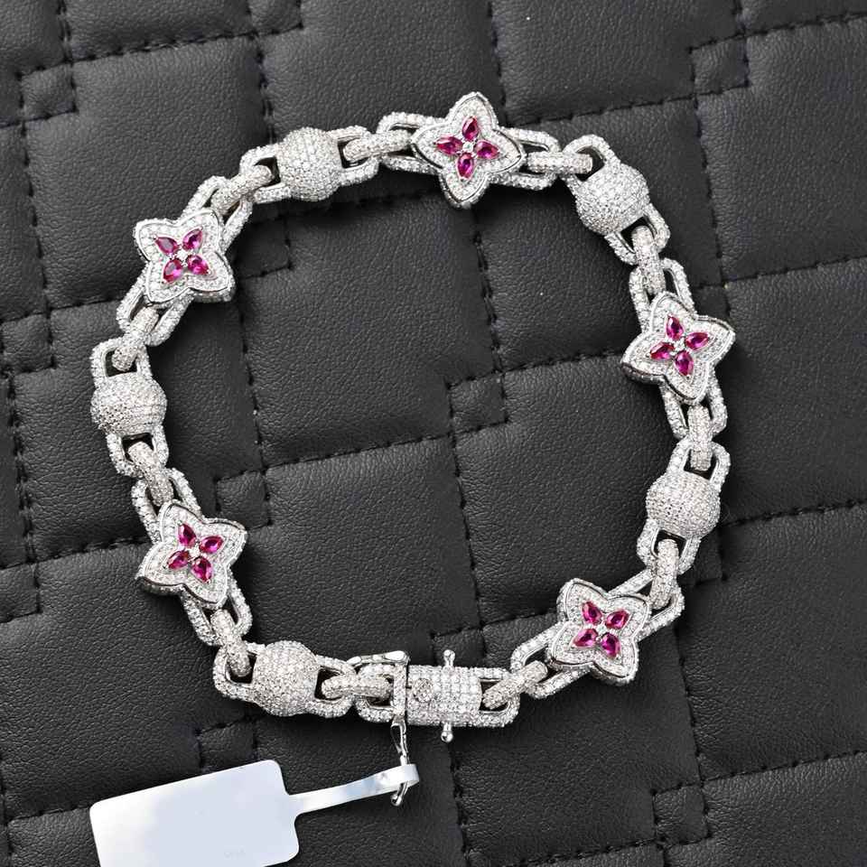 Dvars Diamond DMB-45 Trendy Moissanite Clover Cluster Tennis Bracelet VVS D Color Solid 925 Sterling Silver Iced for Men Women