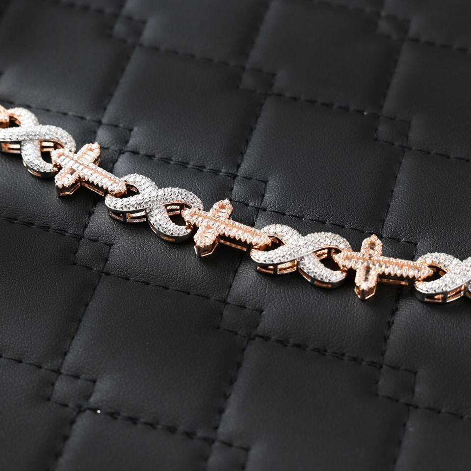 Dvars Diamond Infinity Cross Moissanite VVS D Color Two-Tone Rose Gold Solid 925 Sterling Silver Women's Iced Chain Bracelet