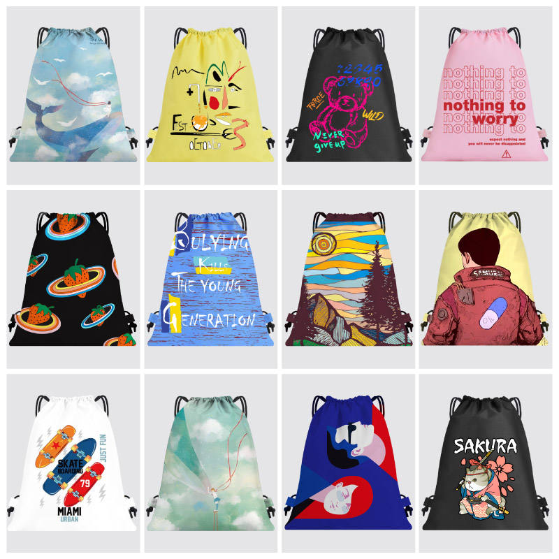 Dye Sublimation Drawstring Polyester Lightweight Fashion Backpack Custom Printed