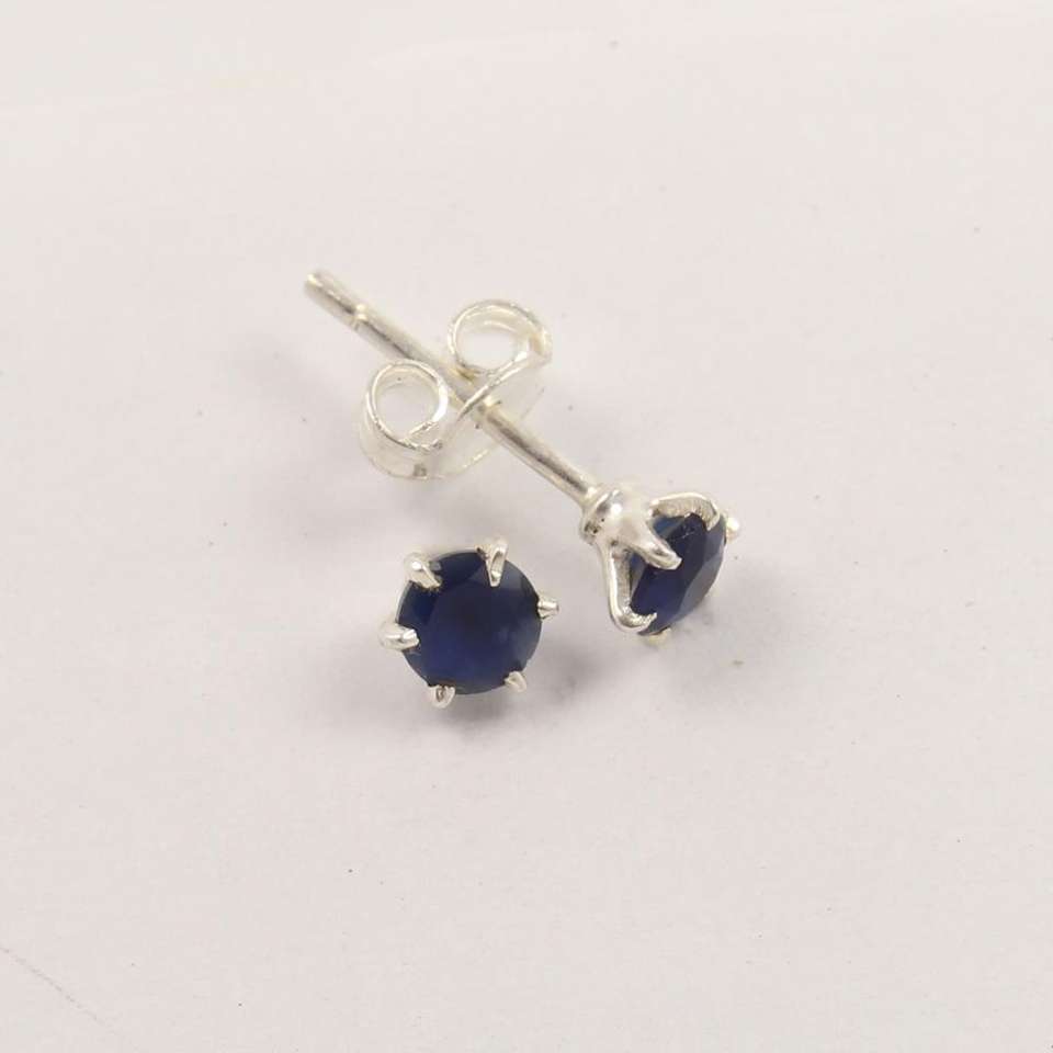 Dyed Blue Sapphire 4x4mm Round Cut Faceted Gems 925 Sterling Silver Stud Earrings Fashion Jewelry Wholesale Price Gift for Her