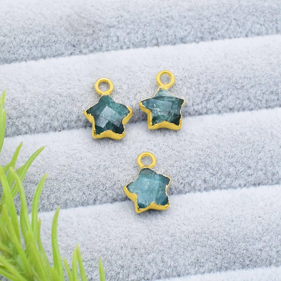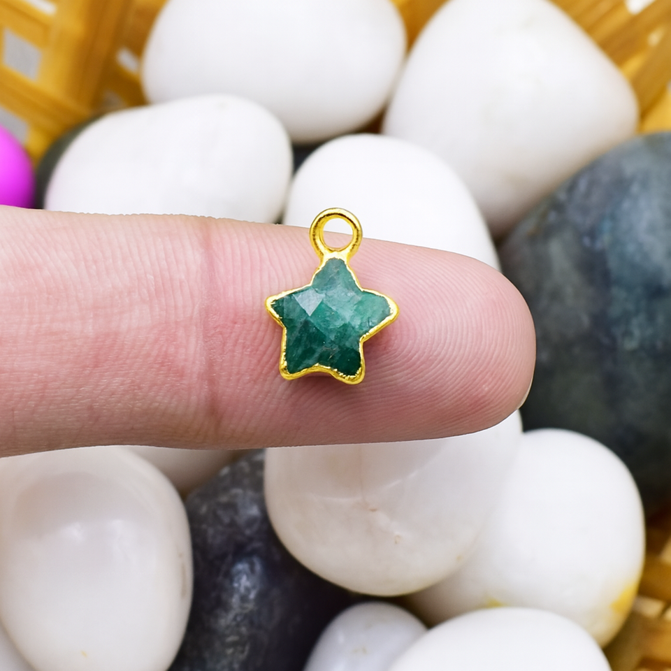 Dyed Emerald Star Gemstone Pendant Faceted Gold Electroplated Tiny Charm for Necklace & DIY Jewelry