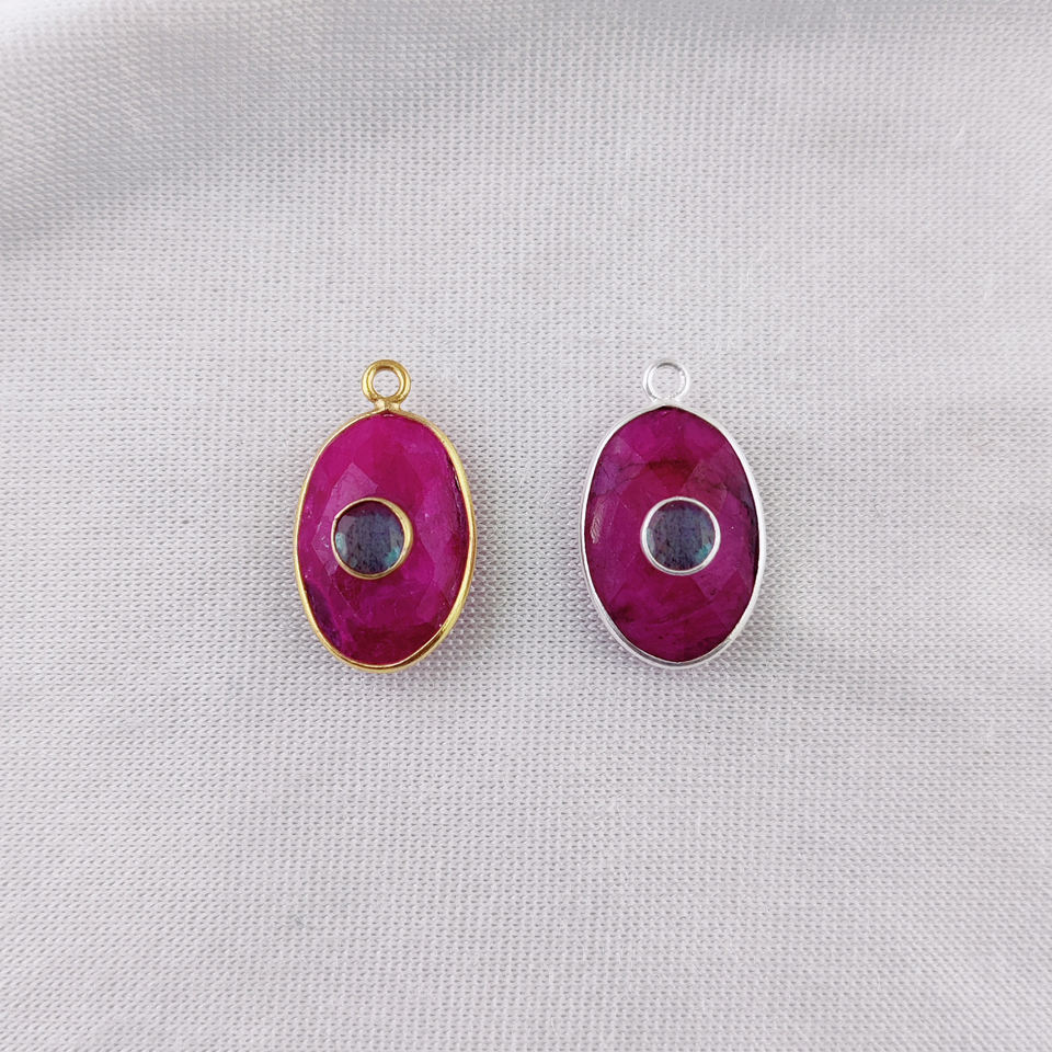 Dyed Ruby Gemstone Size 14x10mm Gold Vermeil 925 Sterling Silver Bezel Set Pendant Double Stone Silver Pendant Natural Crystal's
