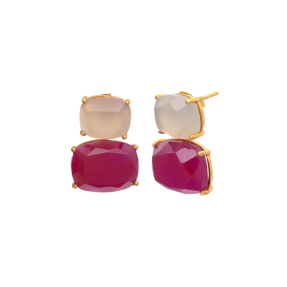 Stone:Dyed Ruby And Gray Chalcedony