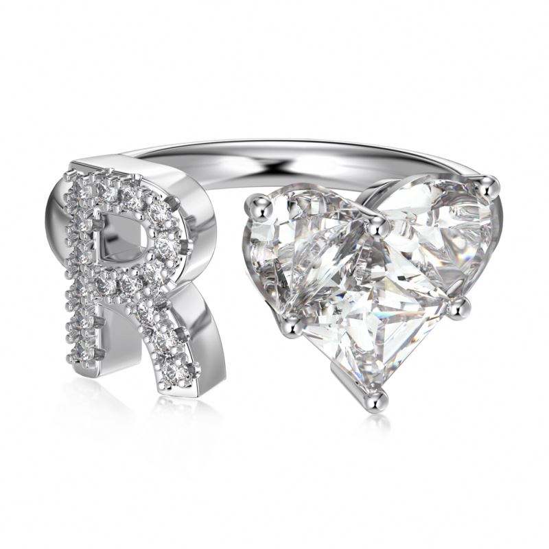 Dylam A-Z Initial Letter R Engagement Wedding Rings for Women S925 Silver 0.75CT 5A Heart CZ Promise Band Anniversary Gifts