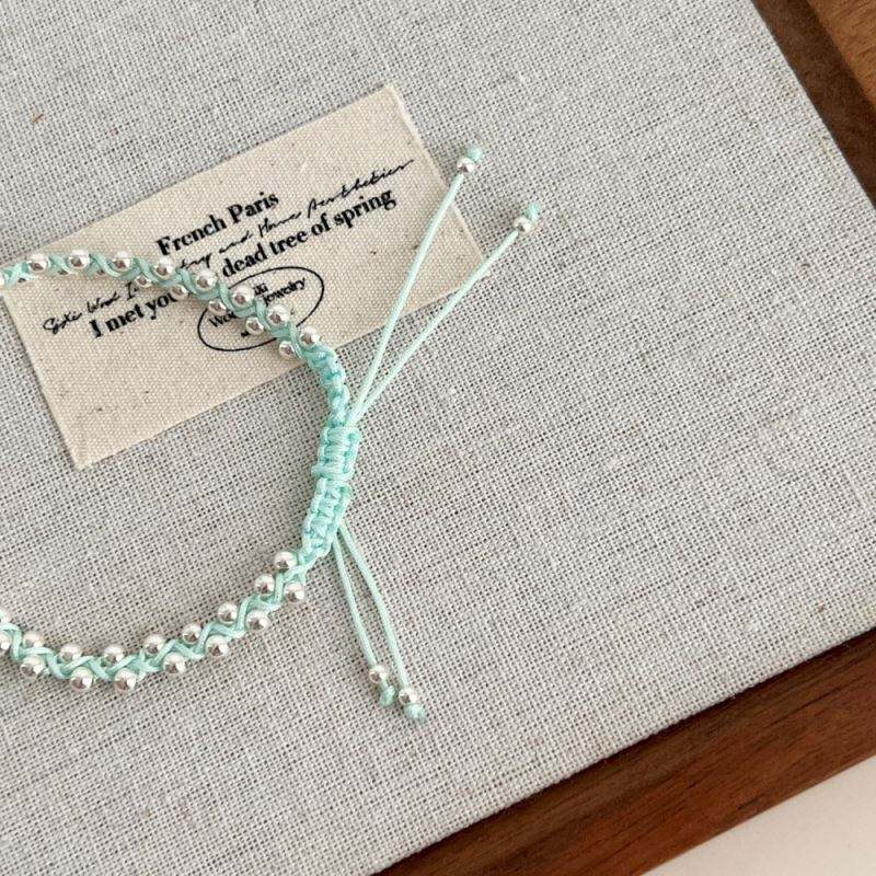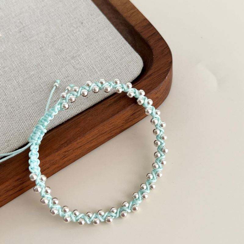 Dylam Dainty Adjustable Rope Beaded Chain Bangles & Bracelets Unique 925 Sterling Silver Beads Bracelet for Daily Life