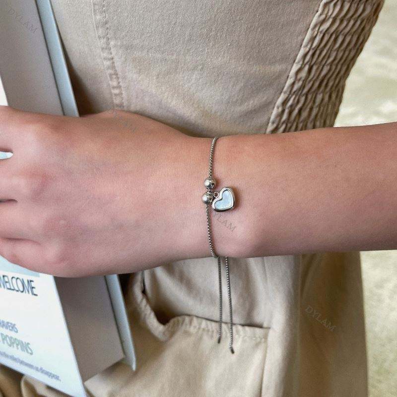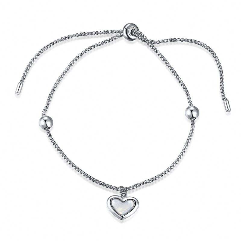 Dylam Expandable Natural Shell Stone Slide Box Chain Adjustable 925 Real Silver Ball Love Heart Charm Bracelet