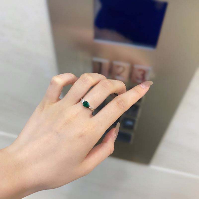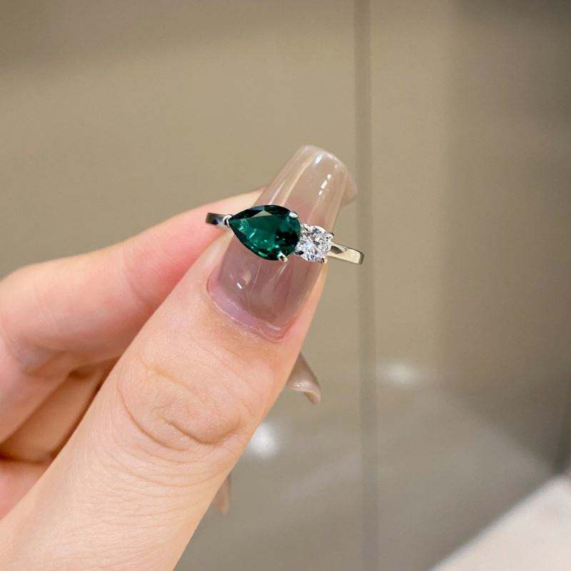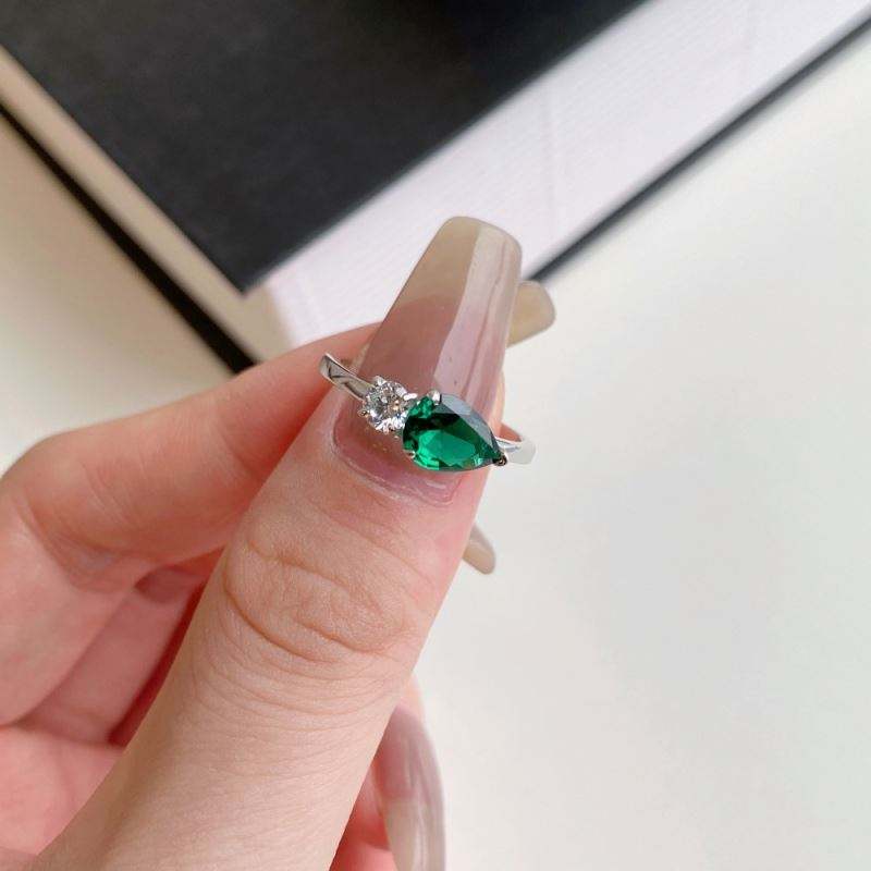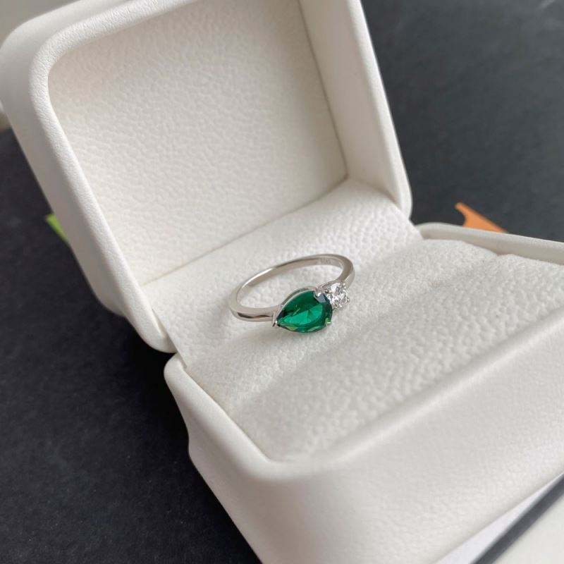 Dylam Top End Collection Rhodium Plated 925 Sterling Silver Diamond Sparkling Tear Oval Emerald Two Stone 5A Zirconia Ring