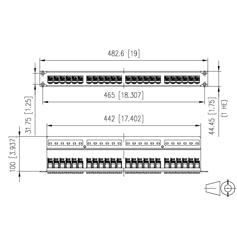 E-DAT 24x8(8) 1U Stainless Steel Patch Panel Cat.6A 1U Module