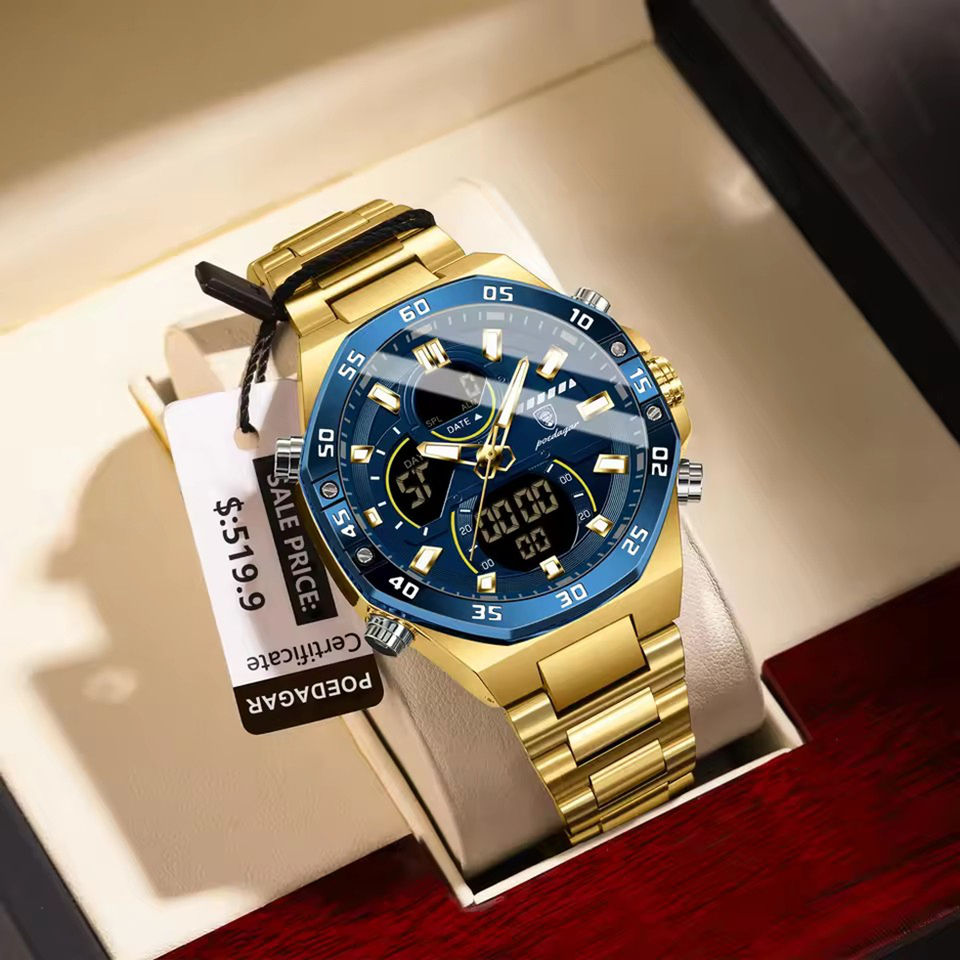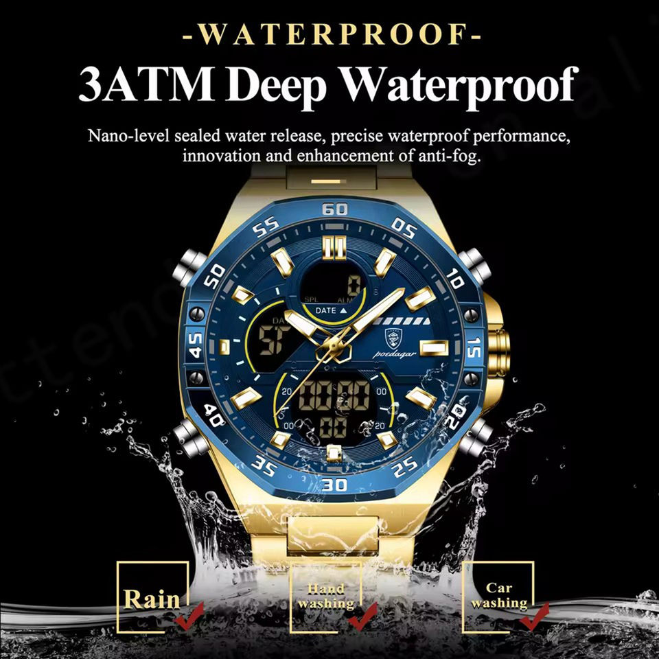 E101 Fashion Men Clock Waterproof Luminous Man Watch LED Dual Time Display Digital Electronic Quartz Men's Watches