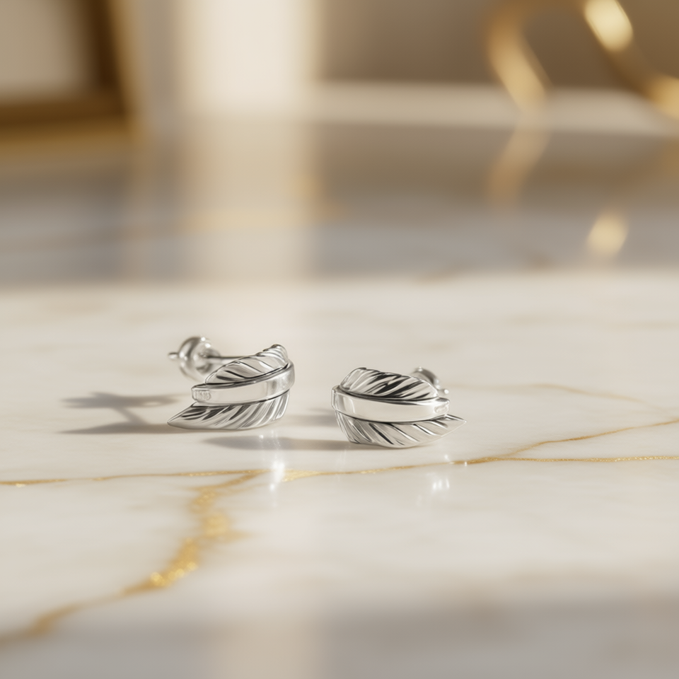 E2698 White Gold Feather Cuff Earrings Minimalist Unisex Fine Jewelry