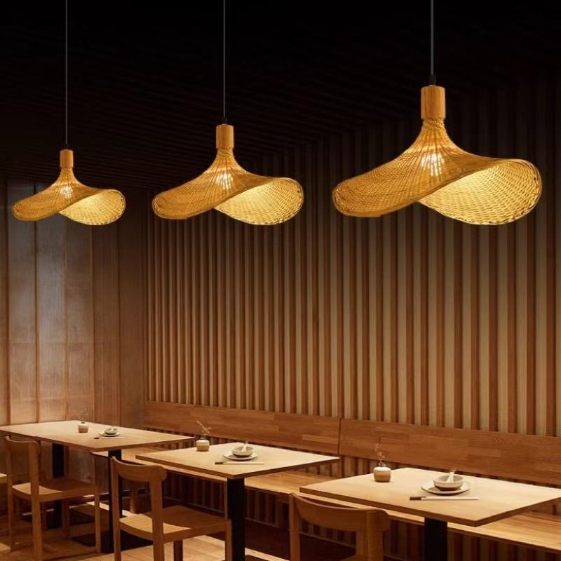 E27 Pendant Lamp Hand-Woven Bamboo Rattan Shade Natural Light Lampshade for Home Dining Room Villa Available Small Large AC