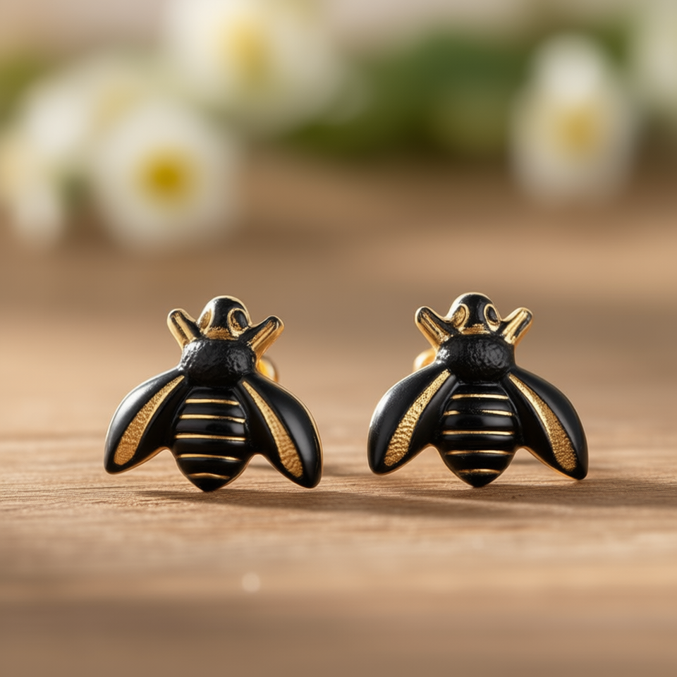 E3287 Black And Gold Bee Stud Earrings Fashion Jewelry For Women Accessories
