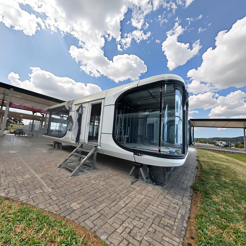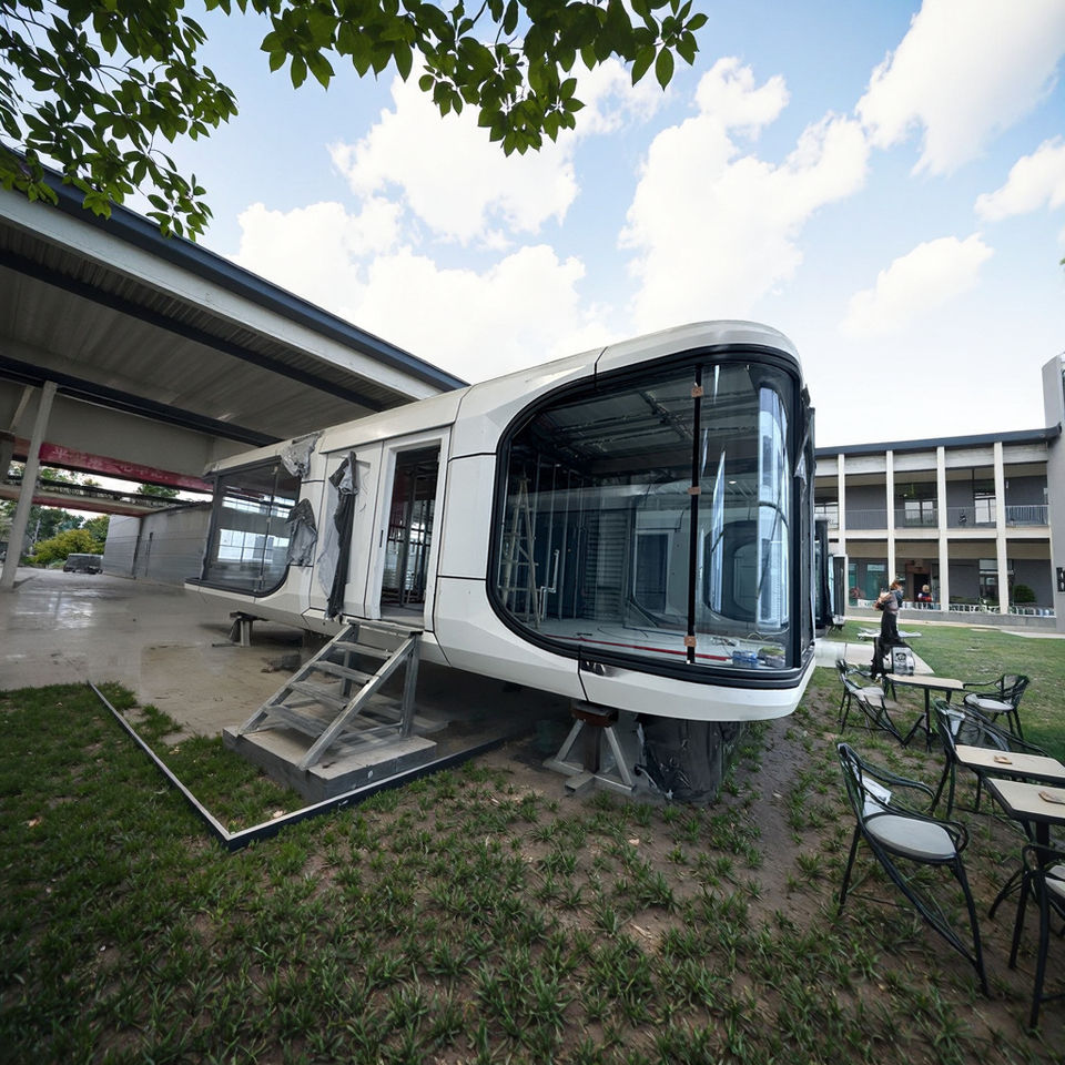 E7 Modern Aeroplane-Style Container House with Steel Sandwich Panel for Villa Hotel Office School & Apartment Use