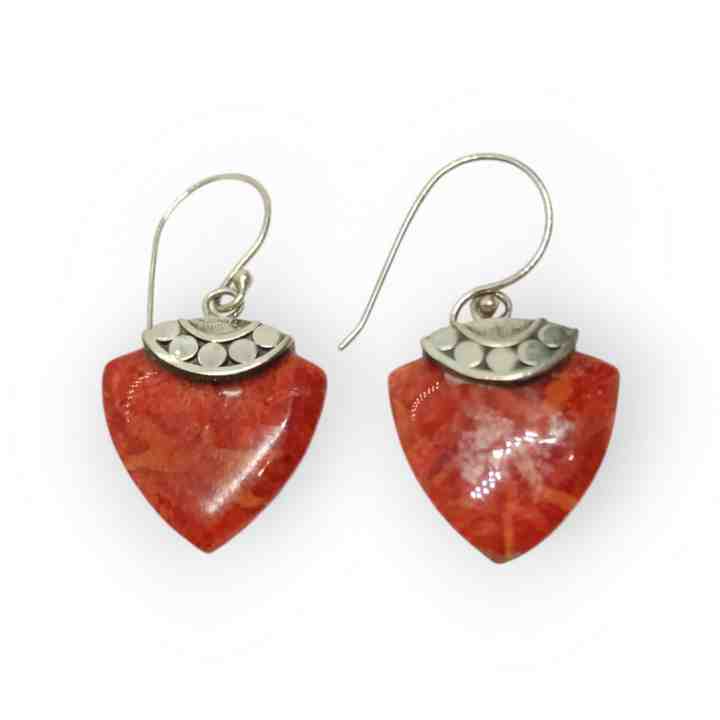 EA24205-Triangle Coral Hook Simple Design Sterling Silver Earrings Set Gold Plated Jewelry Fashion for Women Girls Bali Style