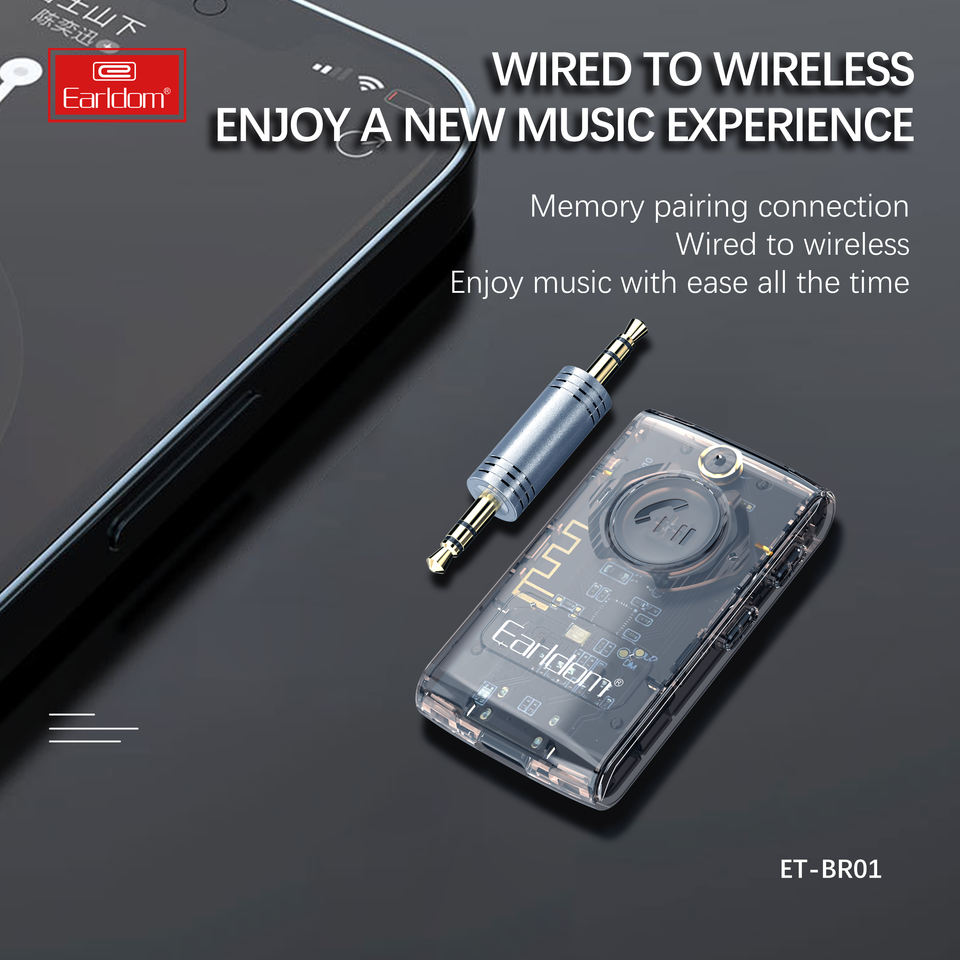 EARLDOM 3.5mm Car Kit Wireless Handsfree Car Kit V5.3 Music Adapter for Car/earphone/speaker Transparent