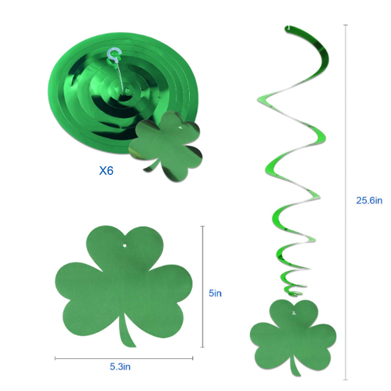 EASTTERN St.Patrick"s Day Hanging Shamrock Swirls Decorations 6 Pcs