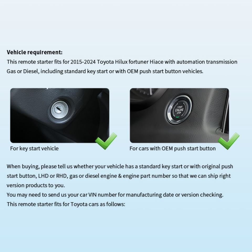 EASYGUARD Plug & Play Factory Key Remote Starter Fit for 15-24 Toyota Hilux Fortuner Hiace Automation Transmission Gas or diesel