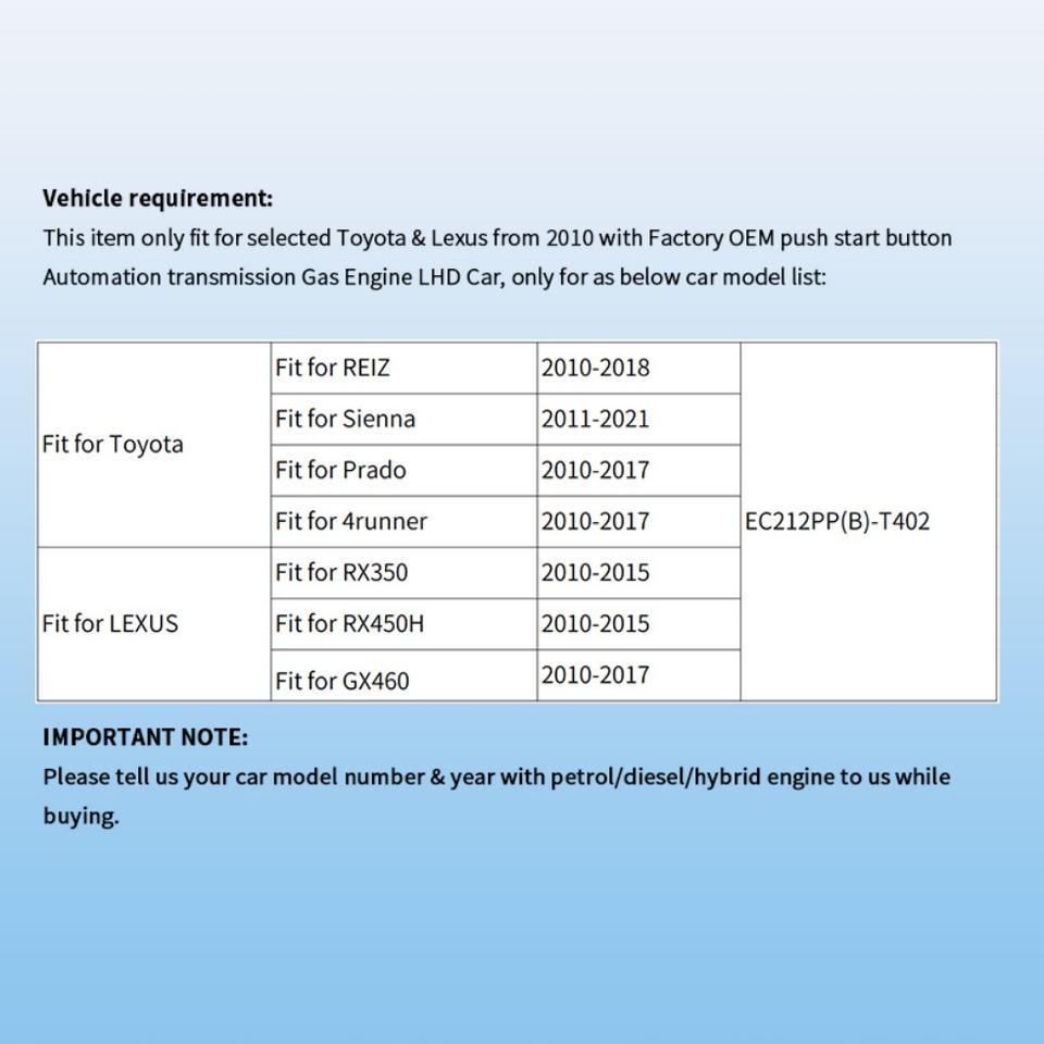 For Plug&Play One Way 3X Lock Factory Key Remote Starter System for Reiz Sienna 4Runner Lexus RX350/RX450H/GX460
