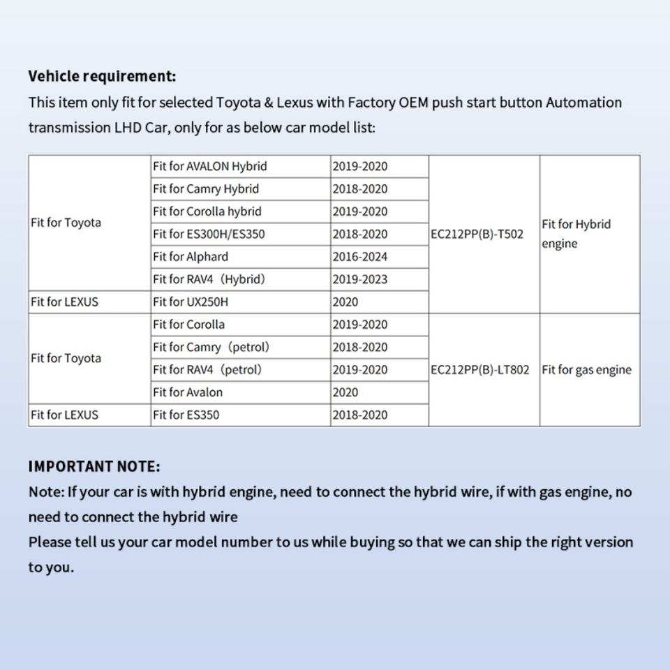 EASYGUARD Plug& Play Factory Key Remote Starter System for Toyota Camry, Avalon, Corolla, Rav4 18-20 With Factory Push Button