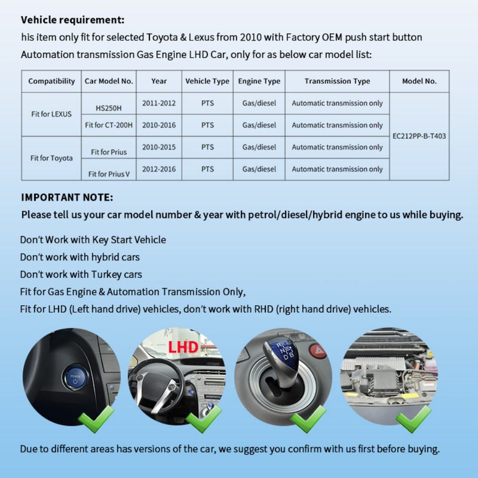 EASYGUARD Semi Plug & Play Factory Key Remote Starter System for Selected Toyota Prius & Lexus CT200H with OEM Start Button