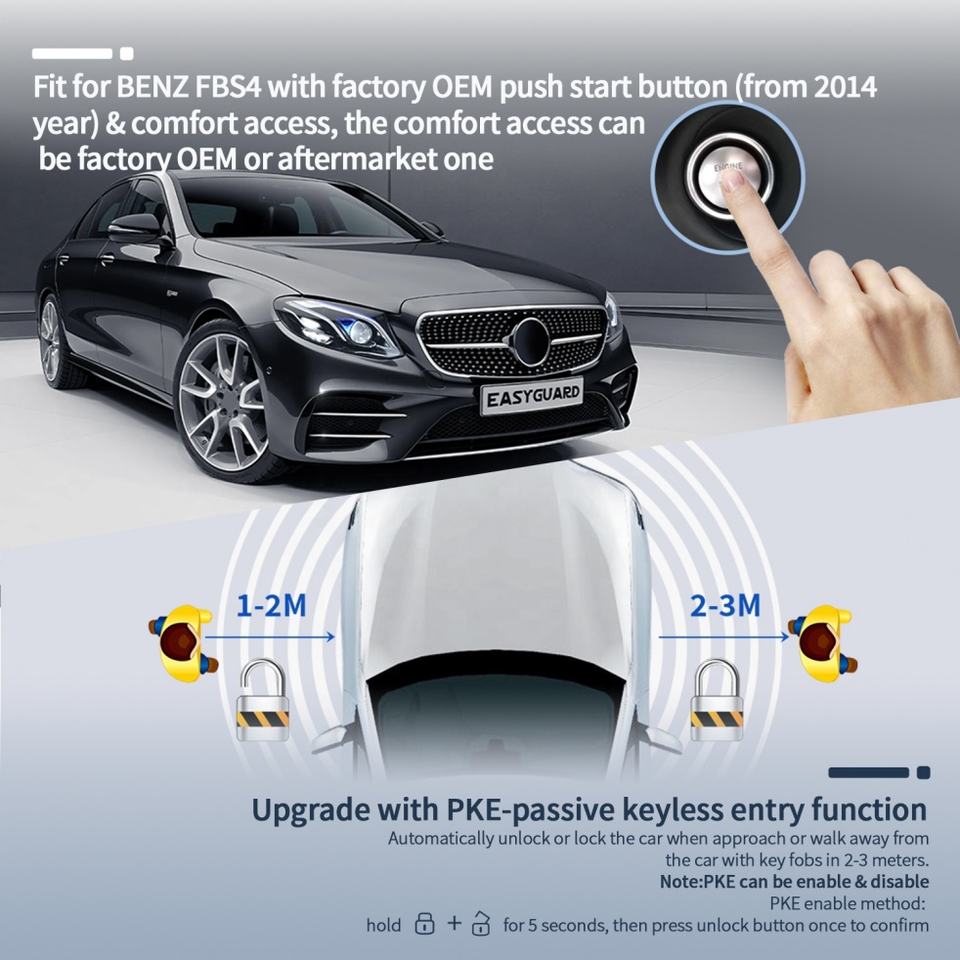 EASYGUARD Smart Key Keyless System Fit for BENZ FBS4 with OEM Start Button (2014-)& comfort Access