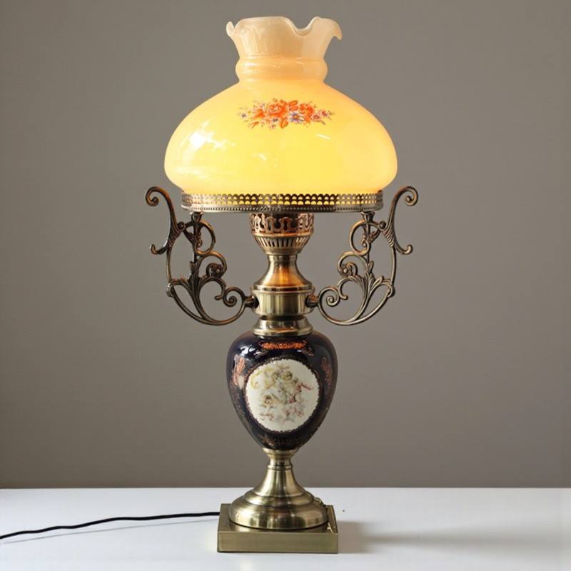EB2702 CHIMNI GLASS LAMP CLASSIC CENTERED CERAMICS PART Antique Brass COLOUR Fitting