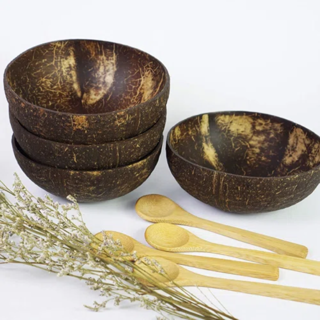 Coconut shell cup and spoon sets