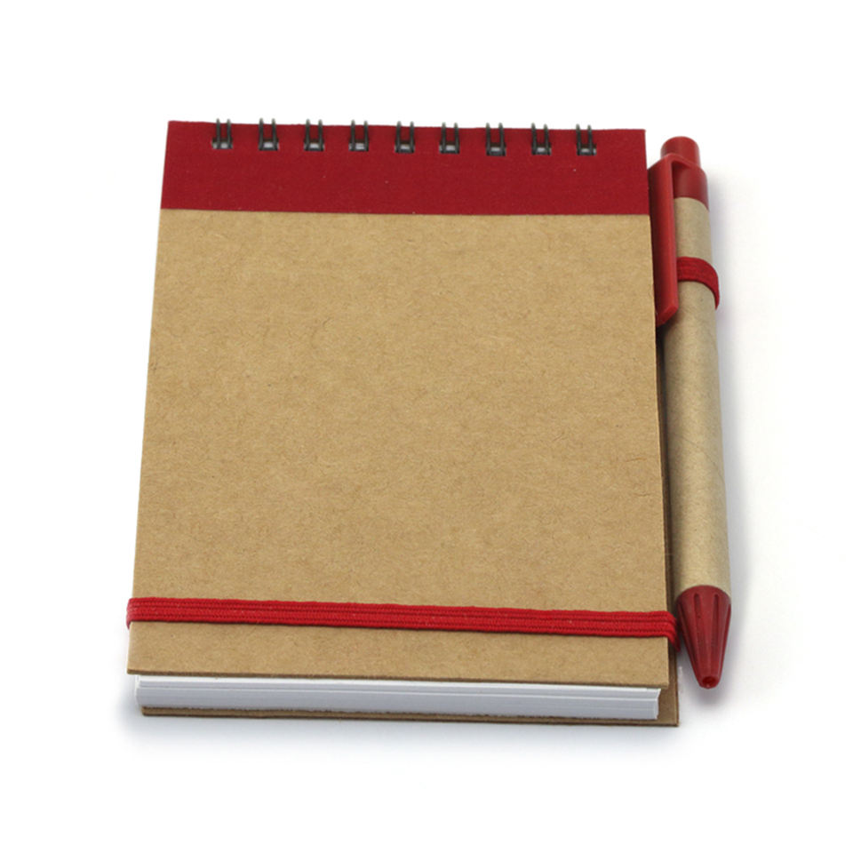 ECO ring-bound notepad with pen, recycled cardboard, rigid cover, 80 sheets, elastic band, customizable, notebook 9.7x14.4x1cm